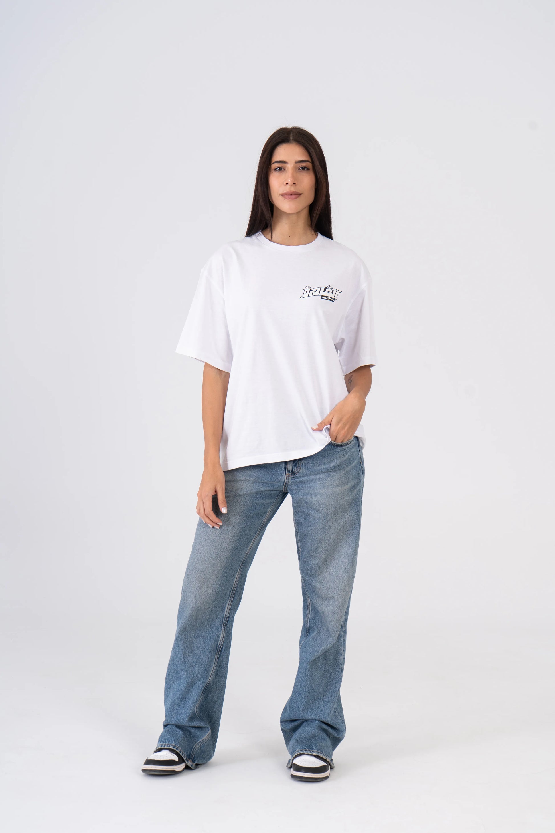 التيشرت الأبيض من أسود القاهرة بيمثل الروح اللي ما بتتروّضش — مدينة ما بتنامش وما بتتراجعش. بشعار الفريق الرسمي مطبوع قدّام وواضح، الدروب ده للّي ماشيين بفخر وزئيرهم أعلى من أي جمهور.